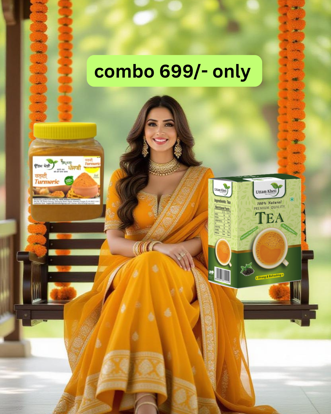 Dadi wali chai haldi combo – 1kg Premium Tea + 400g Dadi Wali Haldi, only ₹699! (MRP ₹749 – Save ₹50). 100% natural, farm-fresh. Perfect for daily immunity & digestion. Punjab’s winter essential – golden milk, morning chai, evening relief. No chemicals, no adulteration – just love & tradition.