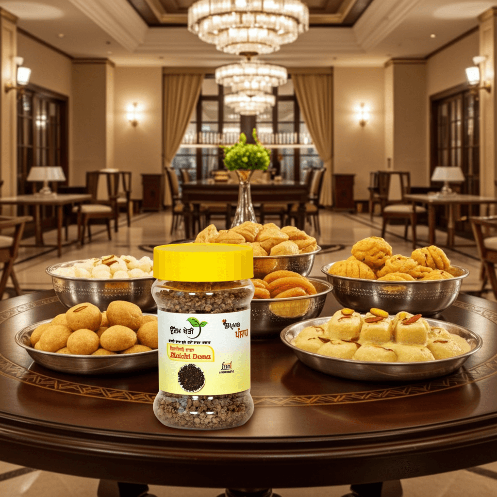 ਸਾਡਾ ਇਲਾਇਚੀ ਦਾਣਾ ਸਿਰਫ਼ ਸਭ ਤੋਂ ਵਧੀਆ ਕੁਆਲਿਟੀ ਵਾਲਾ ਹੁੰਦਾ ਹੈ – ਹਰ ਦਾਣਾ ਧਿਆਨ ਨਾਲ ਚੁਣ ਕੇ ਪੈਕ ਕੀਤਾ ਜਾਂਦਾ ਹੈ। Whether you’re preparing temple prasad or daily mouth freshener, this elaichi dana delivers the perfect sweet note every single time. The small seeds release their full natural fragrance when chewed or added to mixtures – pure enjoyment!