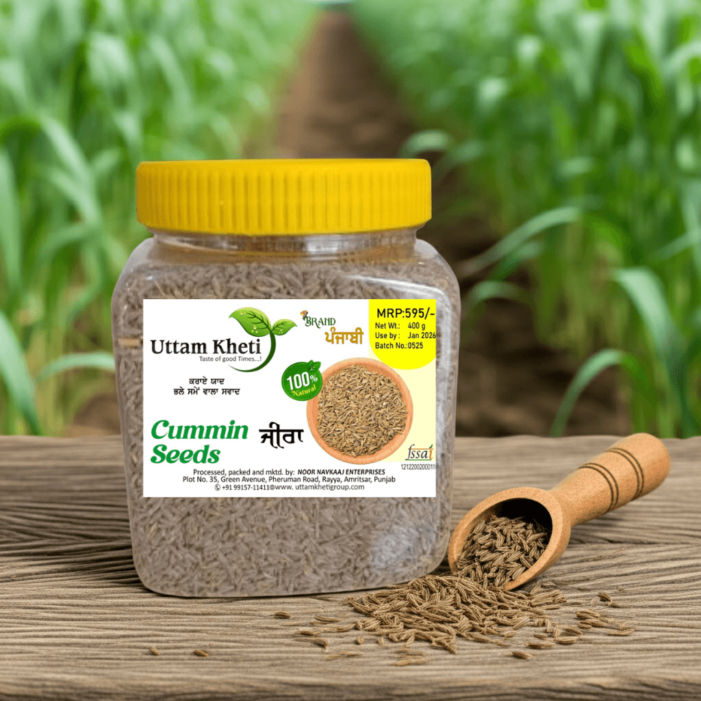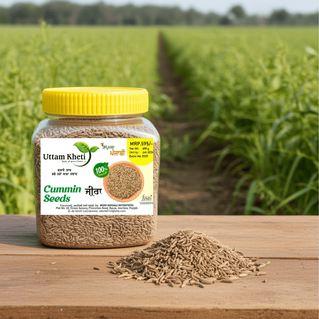 Buy jeera for tadka online from Uttam Kheti – 100% natural cumin seeds handpicked from Punjab’s Doaba farms, sun-dried, and packed fresh within 48 hours. Powerful spicy-sweet aroma that transforms every dish into Dadi wali tadka magic. Rich in iron, antioxidants, and digestive enzymes – perfect for curries, dals, biryani, chaas, and Ayurvedic remedies. Starting ₹149 (200g) with free delivery across India!