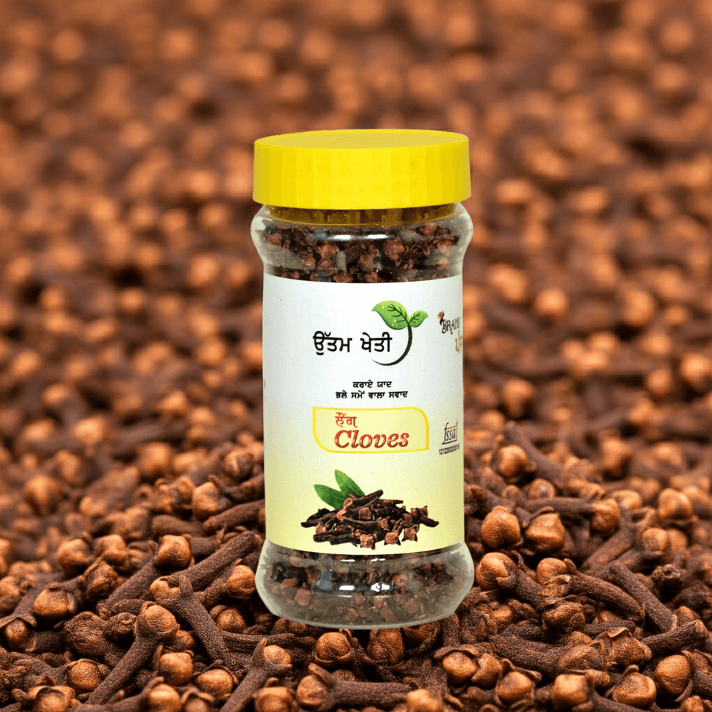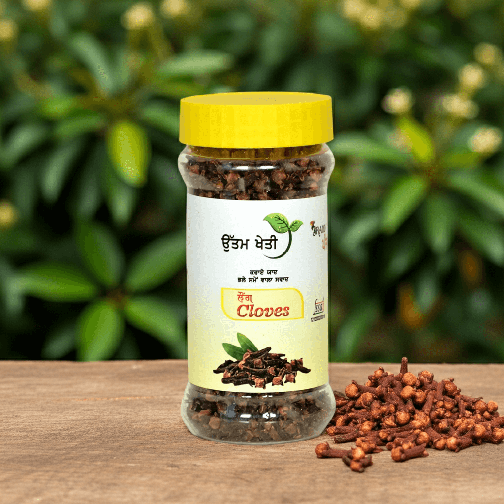 Uttam Kheti organic laung whole brings the intense natural aroma and traditional flavour of handpicked whole cloves straight from Punjab farms to your kitchen. 100% natural whole cloves (laung) – no artificial colours, no preservatives, just pure hand-selected buds that add unbeatable depth, warmth, and fragrance to your garam masala blends, biryani, curries, and chai. Experience the bold, sweet-spicy character that makes every dish unforgettable!